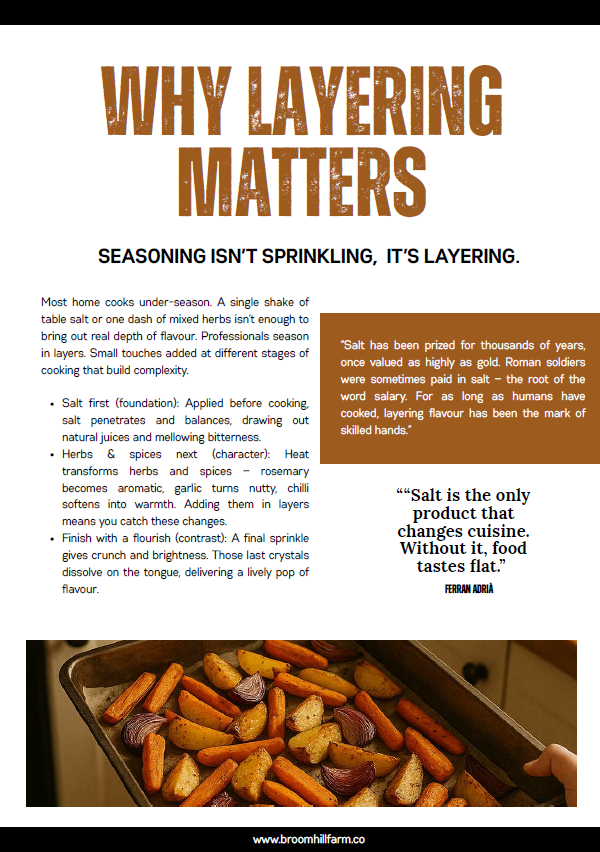 Whether you’re a beginner in the kitchen or simply want to sharpen your instincts, this booklet makes seasoning simple, repeatable, and enjoyable. No jargon, no fuss just clear explanations and recipes that are ready to cook tonight.